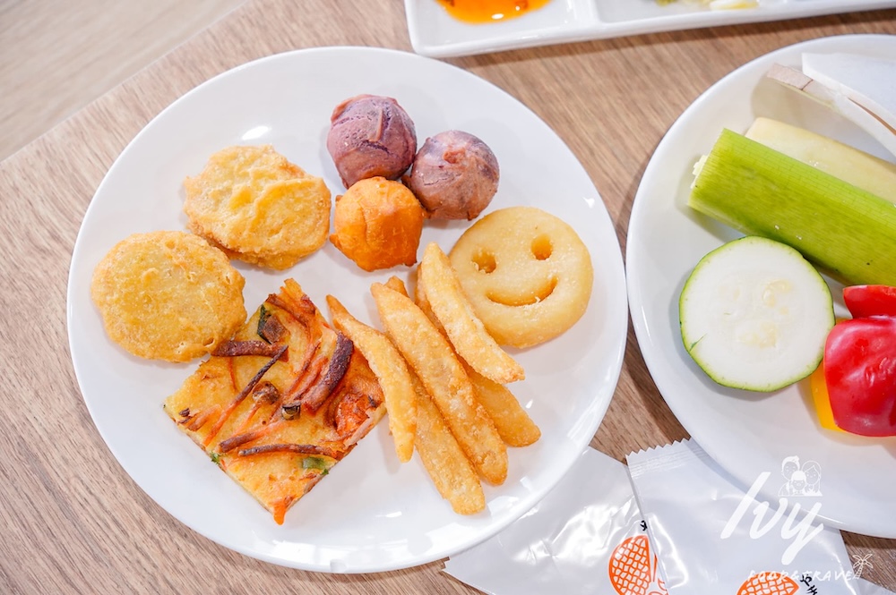 炸物有吃到薯餅、雞塊、薯條、QQ球和韓式煎餅,都熱騰騰的吃起來很酥脆爽口。