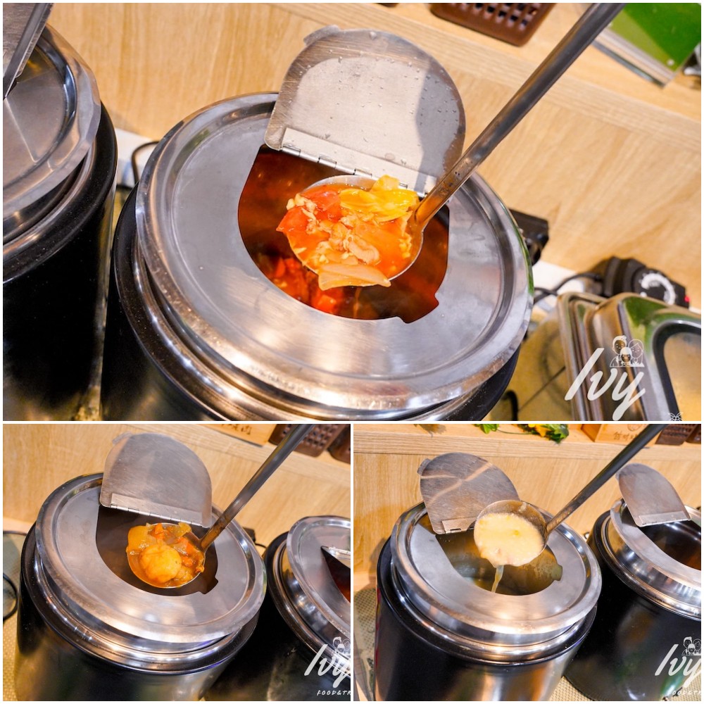 湯品有玉米濃湯和羅宋湯,還有咖哩醬,每種裡面的配料都很多,不是那種隨便應付的自助吧!