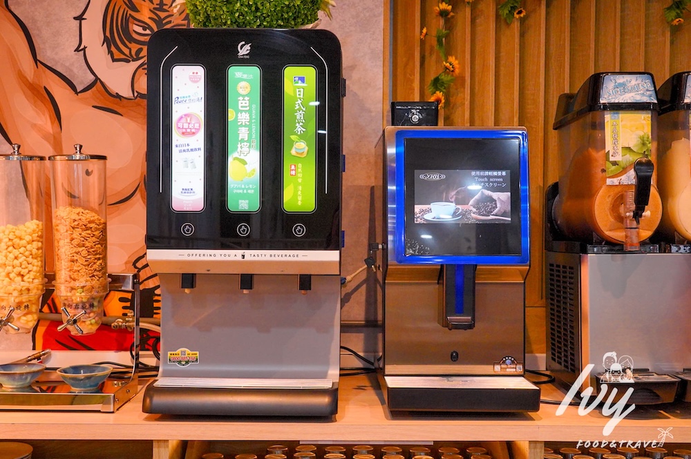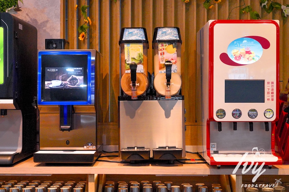 飲料自助吧的選擇比我吃過的台中吃到飽餐廳還要多很多,喝的到冰沙、咖啡、茶品、可爾必思、果醋等,都是偏清爽的飲品