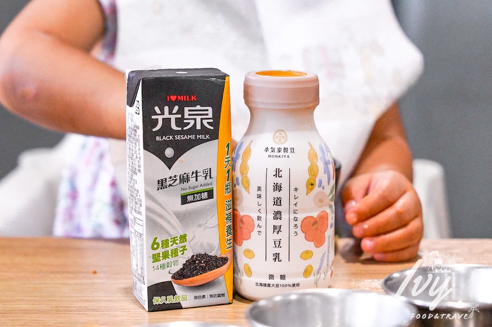 帶小孩來也不怕給他們一直喝飲料,這裡有牛乳、豆乳比較不甜的飲品,甯寶在這就直接喝了好幾罐XD