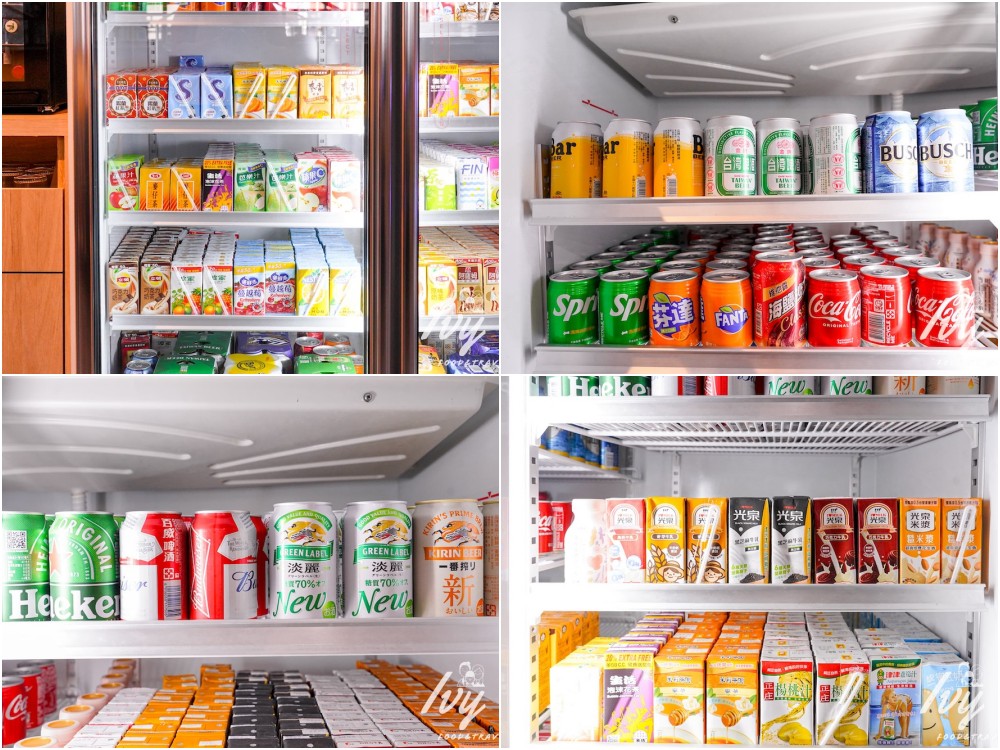 飲料自助吧|滿櫃鋁箔裝飲料、啤酒,還有進口酒無限暢飲