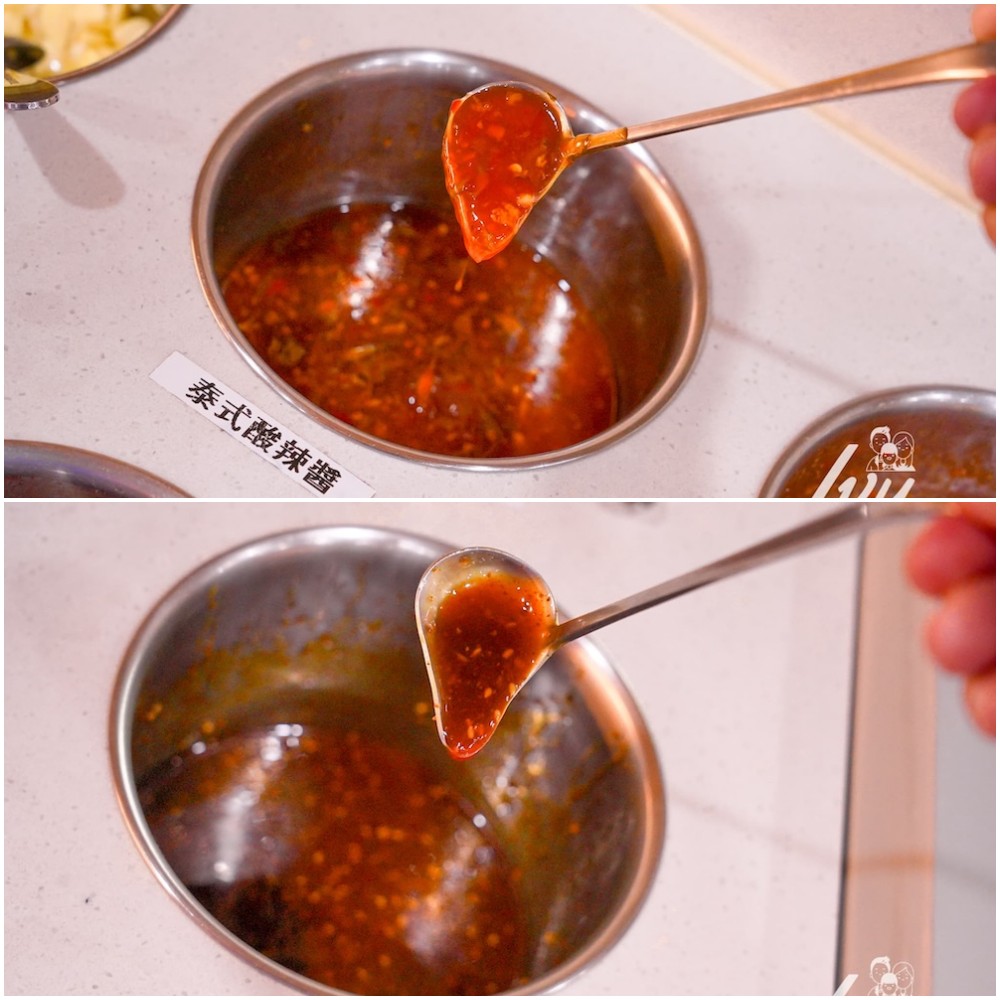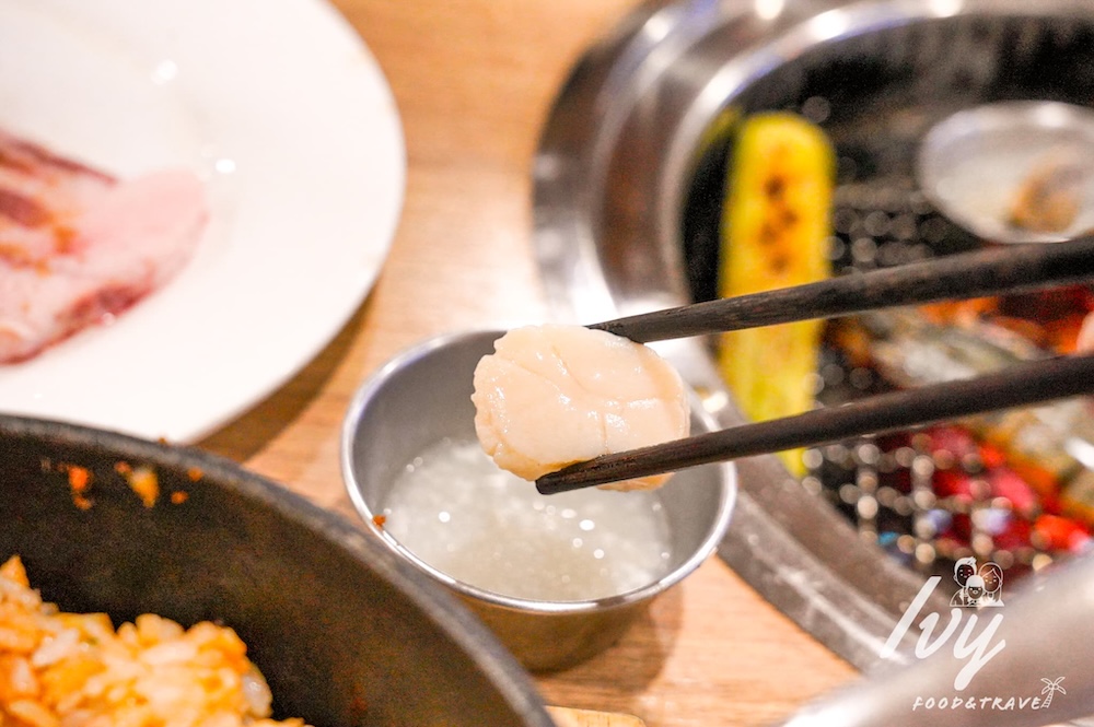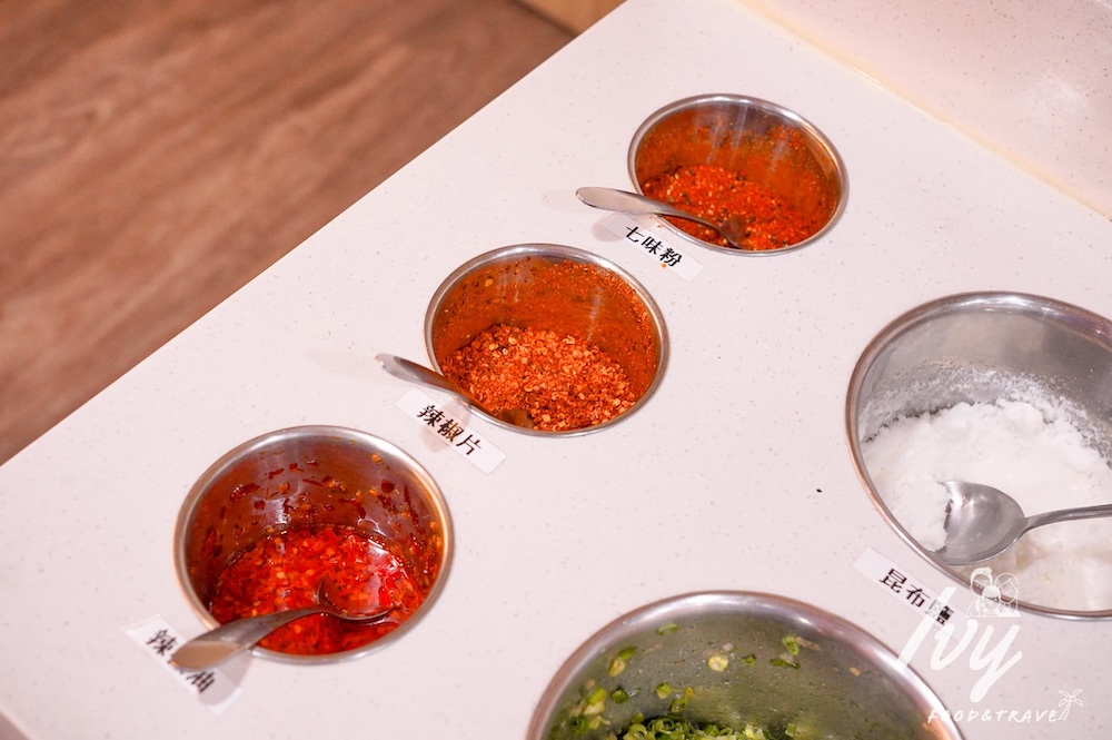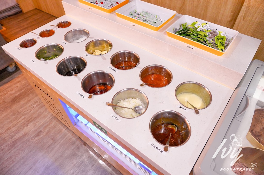 醬料區不只有昆布鹽、日式醬油、蔥蒜等,還有特調的燒肉蒜頭醬、泰式酸辣醬、蔥鹽、辣椒粉等,搭配肉或海鮮吃都能配出不同的風味。