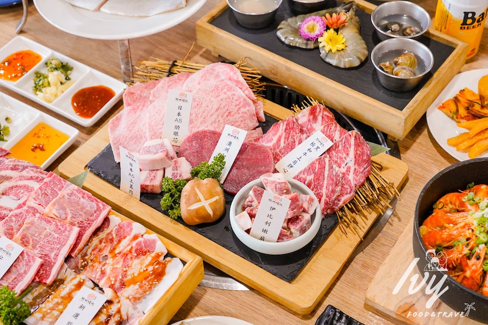 釿炘燒肉 |台中梧棲燒肉推薦,奢華燒肉套餐+冰櫃飲料啤酒喝到飽,甜點還是鯛魚燒冰淇淋,當月壽星送蝦,難怪人氣超高!