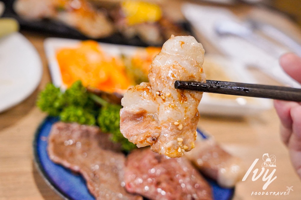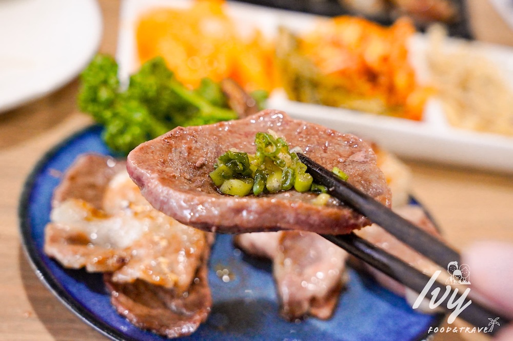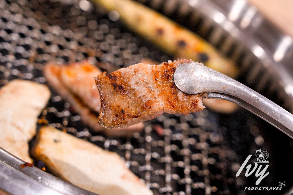 蔥鹽厚切牛舌的厚度簡直有1公分了吧,炙烤過後的厚切牛舌,保有它本身的彈性與嚼勁,再搭配上清爽的蔥鹽,那鹹香的滋味,簡直是絕配!