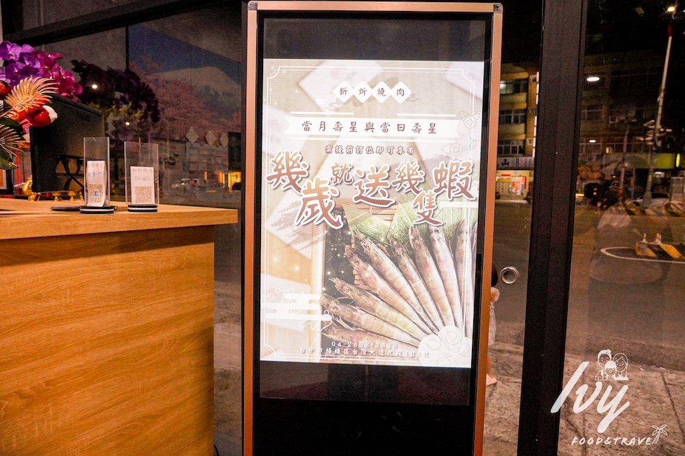 釿炘燒肉有壽星優惠活動,不管是當月還是當日壽星,只要來店用餐就享幾歲送幾隻蝦的優惠哦~