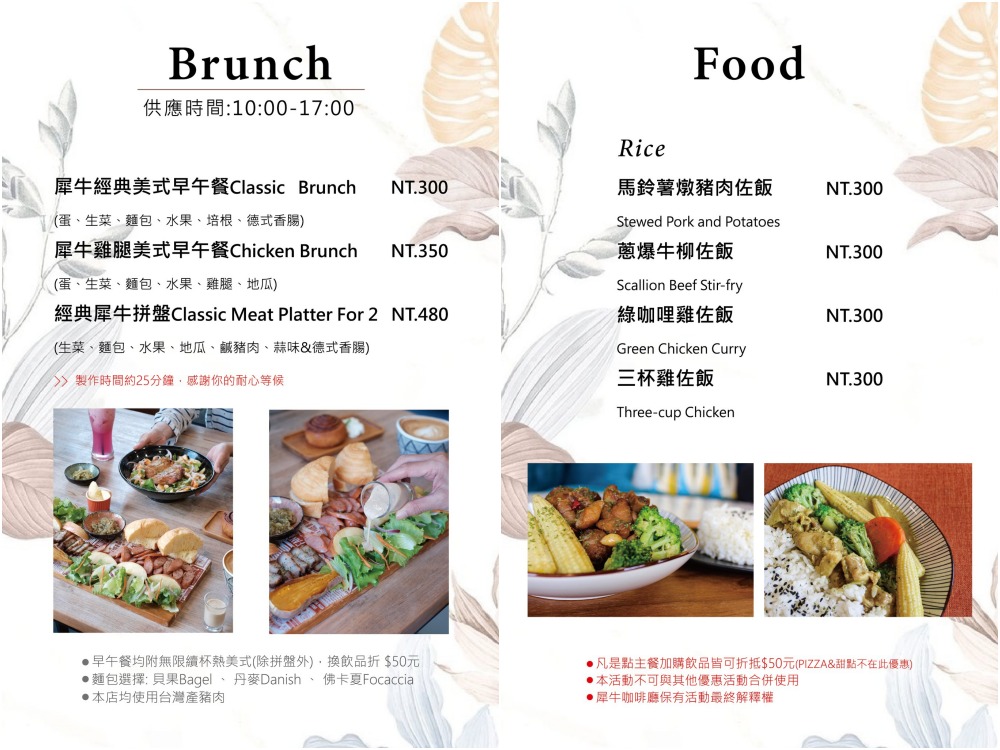 近期 犀牛咖啡Rhino Cafe研發了全新菜單,菜單料理以輕食早午餐為主。