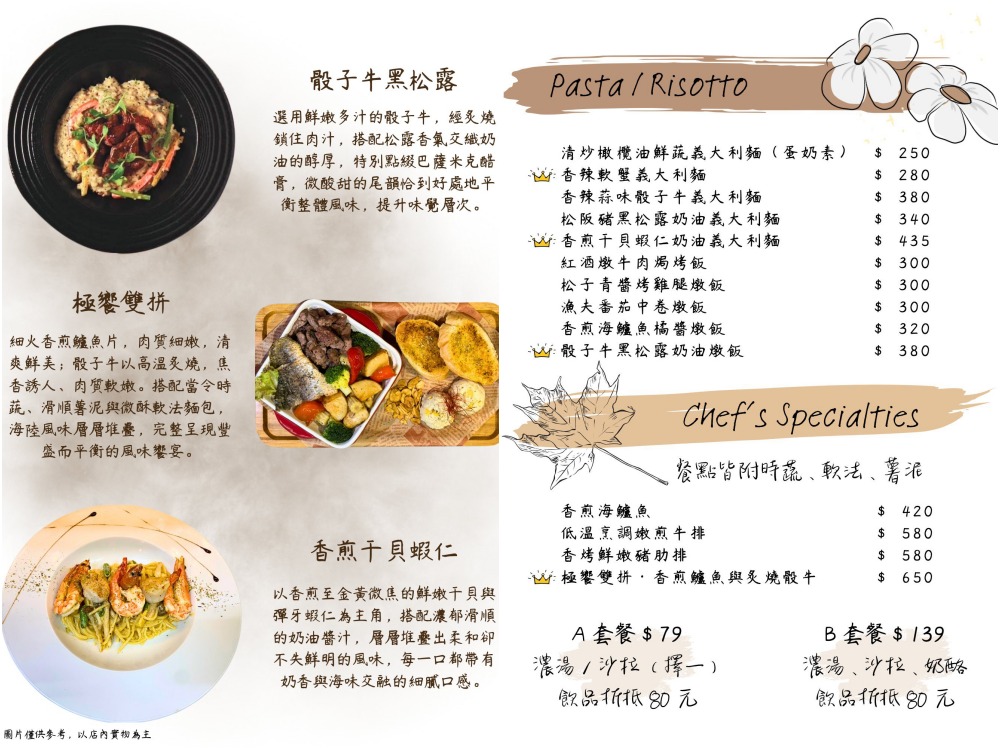 - 低消一份主餐或飲料