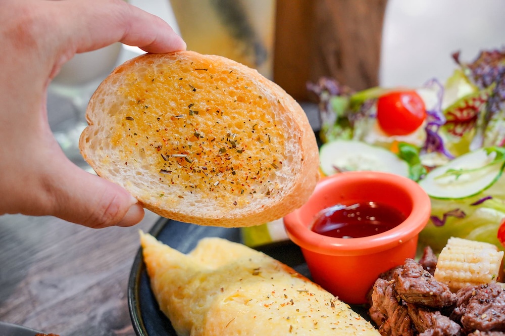 搭配的蒜香麵包,香氣十足,營養均衡又美味!
