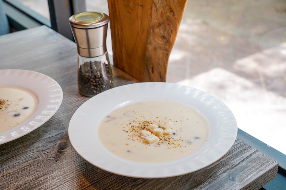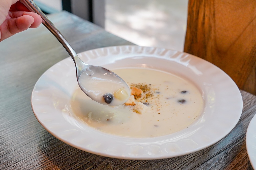 套餐搭配的濃湯,裡面有蘑菇和馬鈴薯,湯頭奶香濃郁,入口滑順迷人,搭配有口感的香菇,喝起來暖胃又暖心!