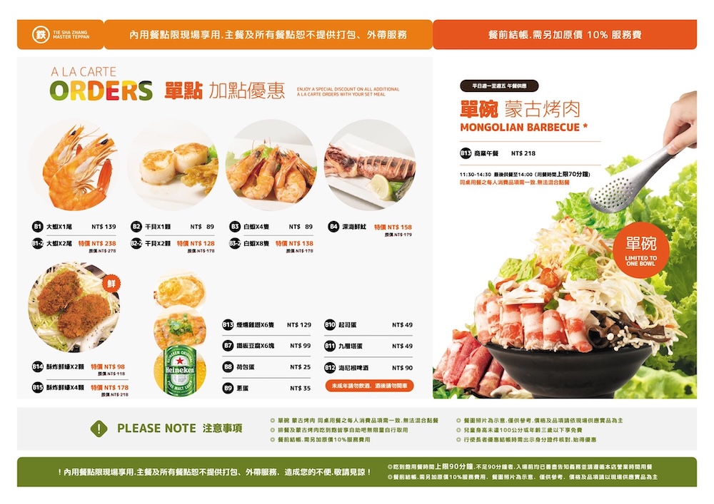 - 90-140公分無點主餐,另收160元自助吧和清潔費