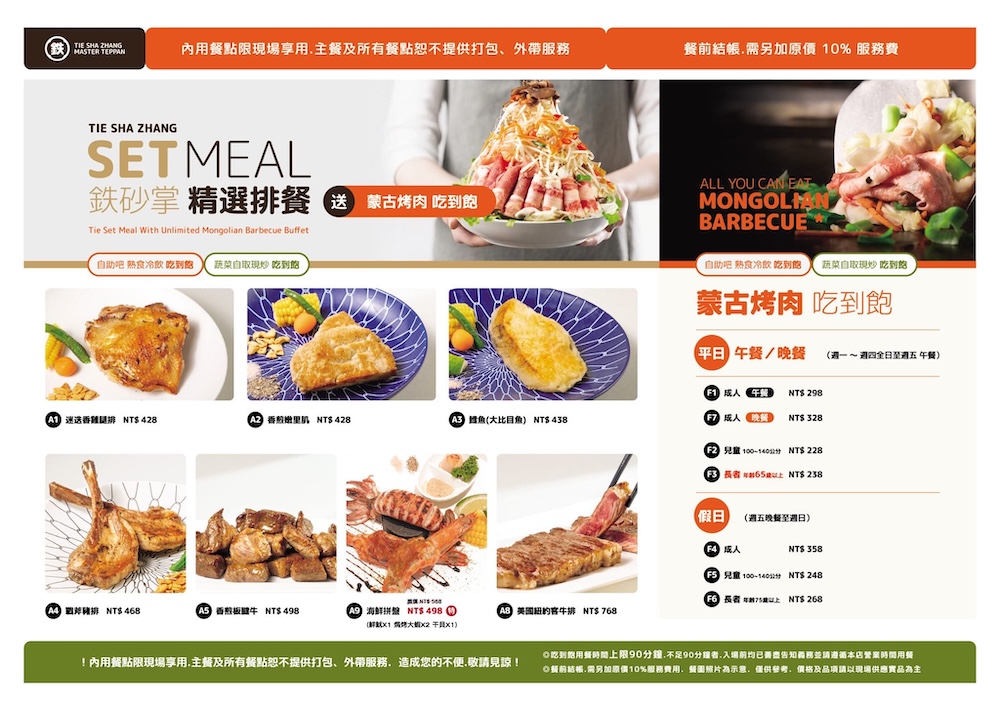 提供現炒蔬菜自助吧的鐵板燒吃到飽,
