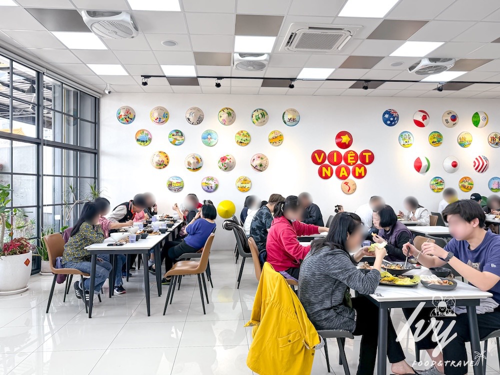 姐妹花越南創意料理大墩南店,內用空間非常寬敞明亮,桌與桌之間不會太擠,還有超美的越南打卡牆,來這裡用餐我覺得蠻舒服的。
