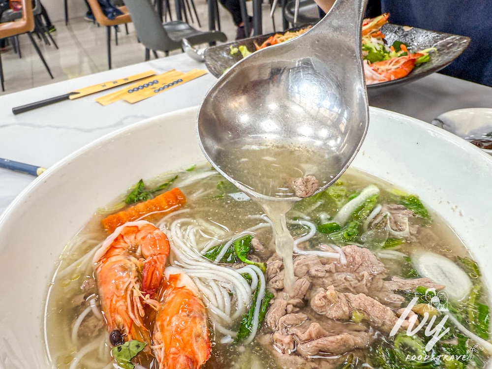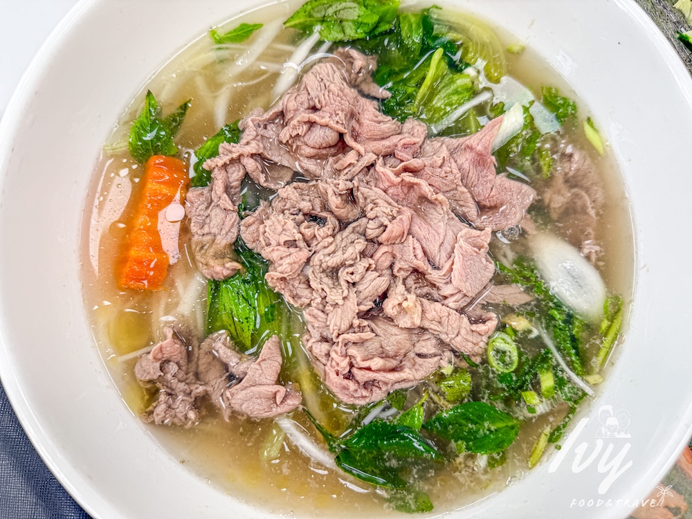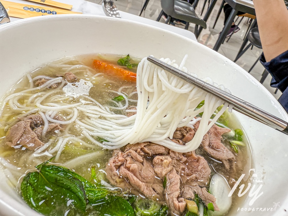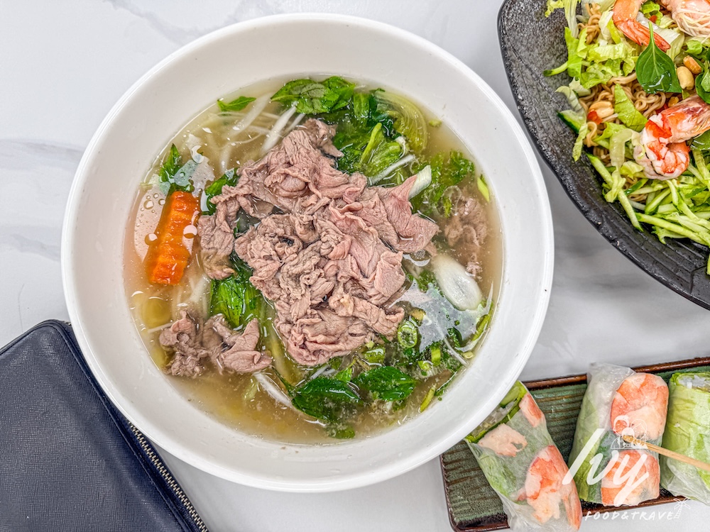 牛肉米線,一上桌就香氣四溢,湯頭內加入豆芽、九層塔、檸檬等配料,讓味道更有層次,上面還有滿滿的牛肉片,讓我彷彿置身於越南街頭,感受著那份道地的風味。