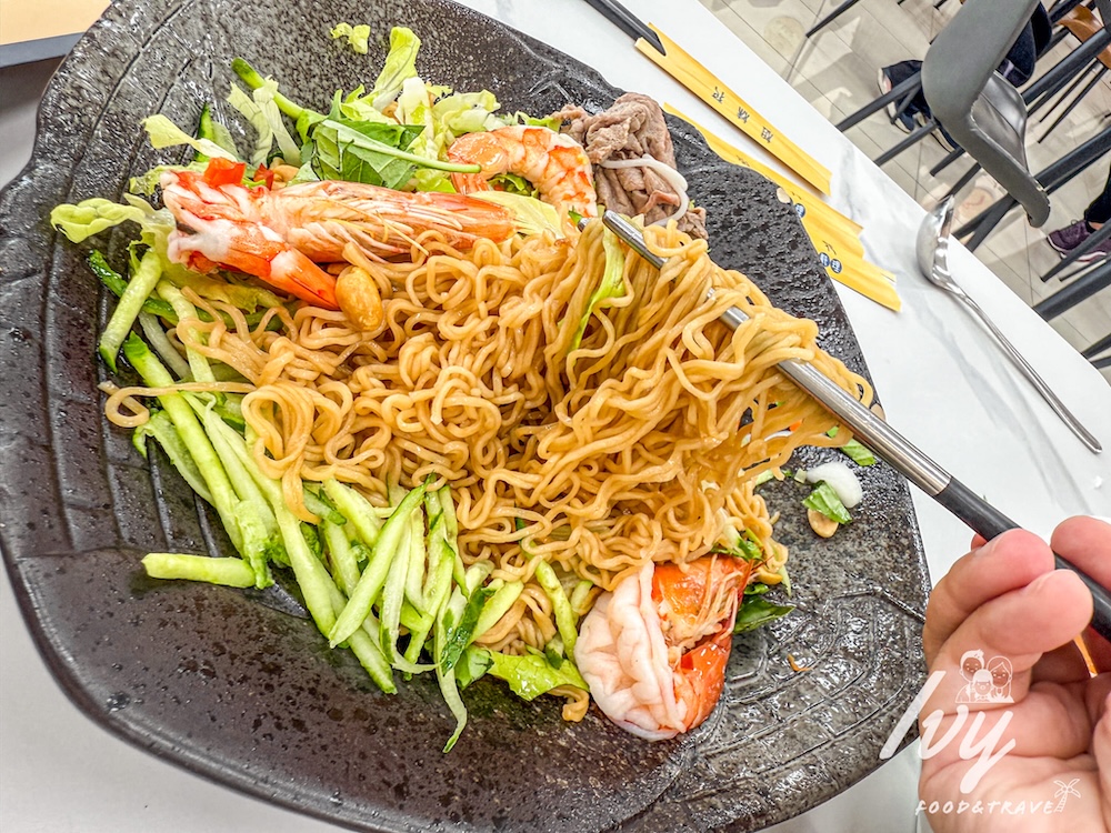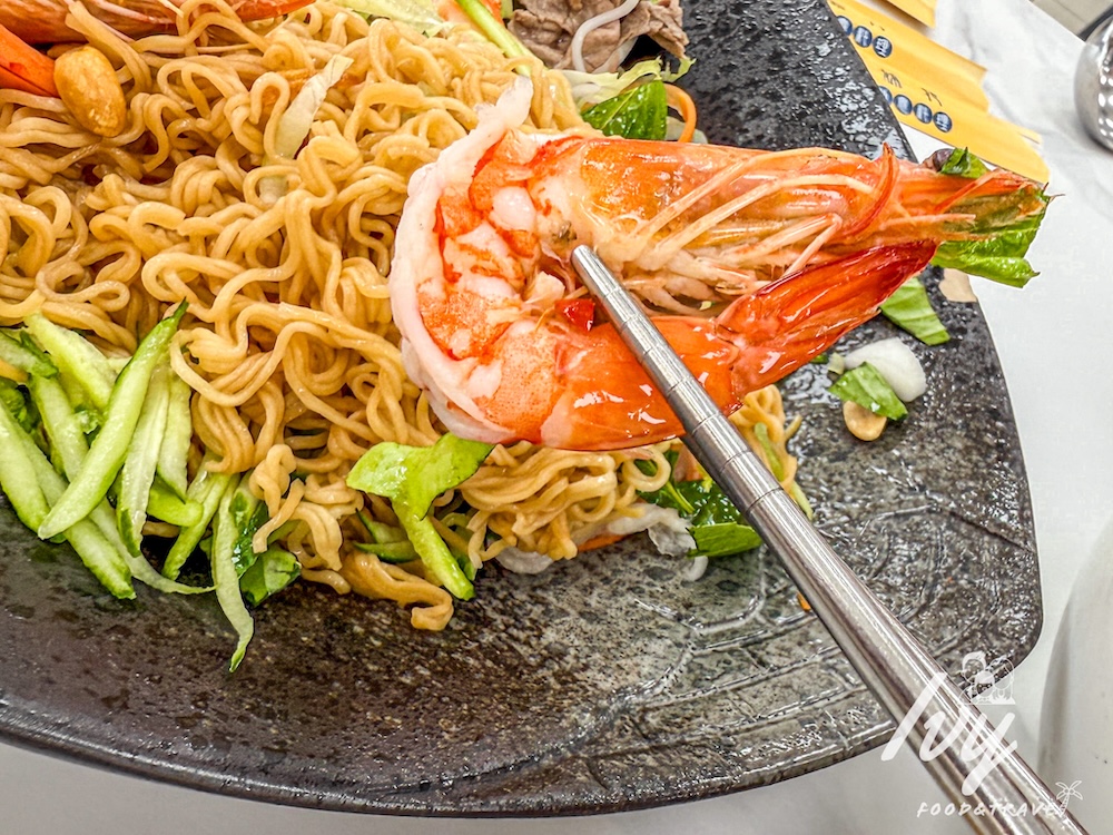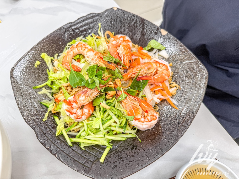 鮮蝦涼拌米線,非常清爽開胃,五隻鮮蝦都有剝殼開背處理好,肉質彈脆好吃,搭配上鹹香的泡麵,淋上特製的醬汁,酸酸甜甜,冰冰涼涼,簡直就是夏日消暑聖品!