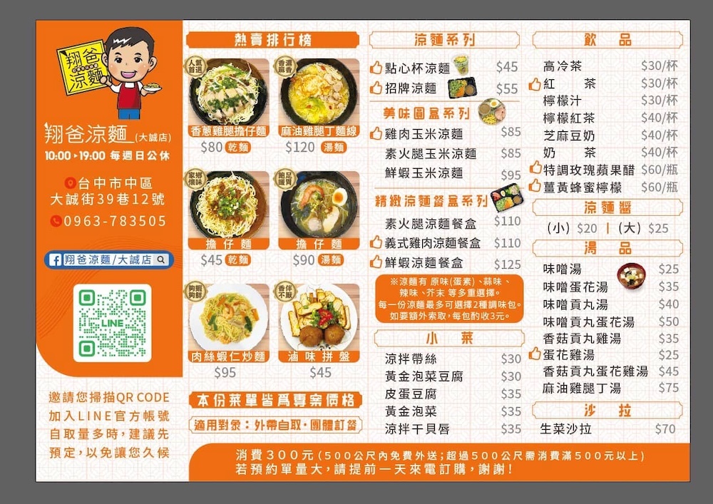 翔爸涼麵大誠店 | 台中中區輕食便當,濃醇香的麻醬涼麵,有如嘉義美乃滋涼麵,加辣更夠味!