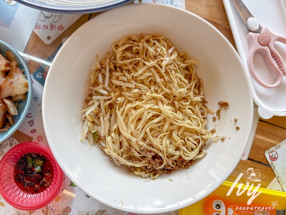 招牌乾意麵,麵條看起來細緻滑順,醬汁裹得均勻,色澤油亮誘人,麵條Q彈有勁,醬汁鹹香適中,帶著微微的甜味,令人回味無窮。