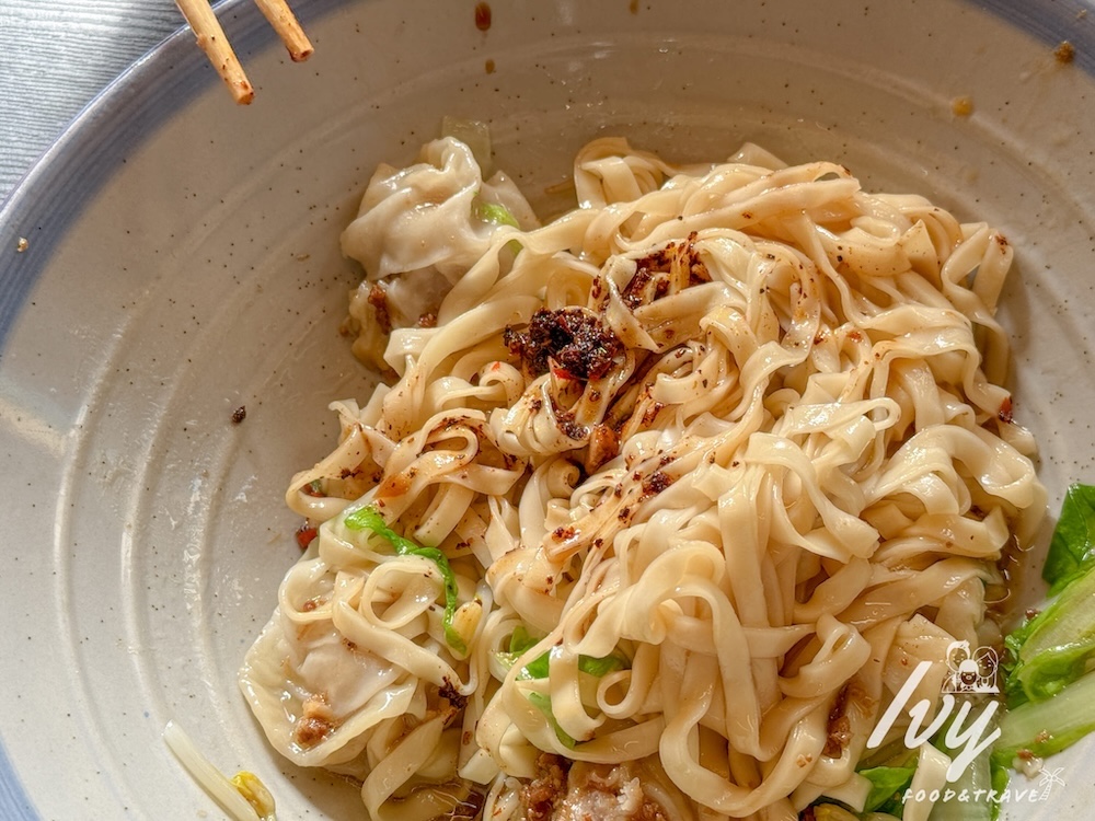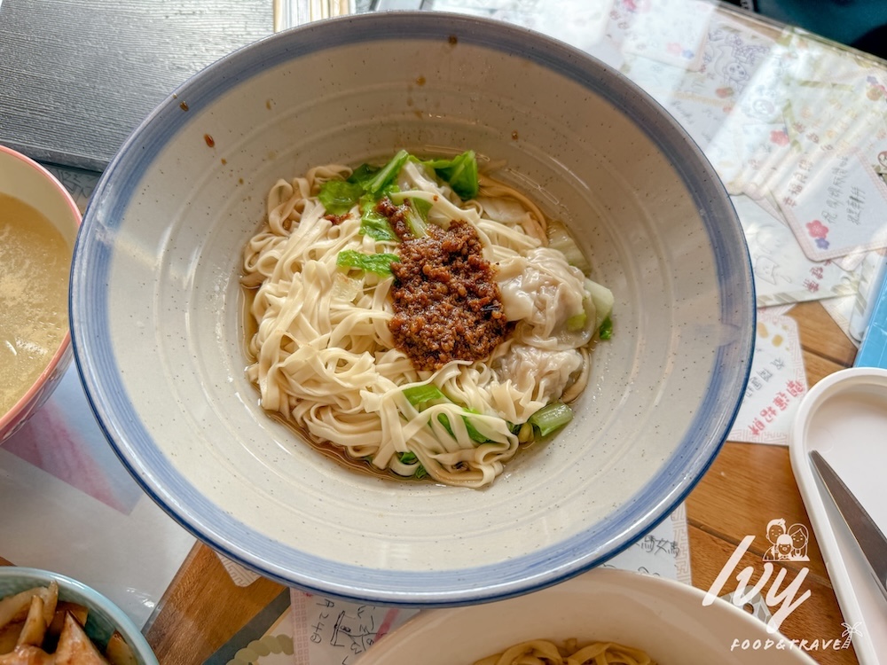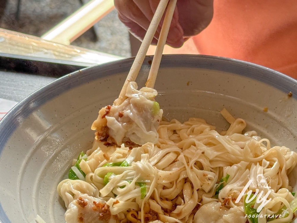 餛飩乾麵,小份量剛好適合我的胃口。餛飩皮薄餡多,內餡鮮美多汁,每一口都充滿著滿足感,麵條同樣是Q彈有勁,和餛飩搭配得天衣無縫。