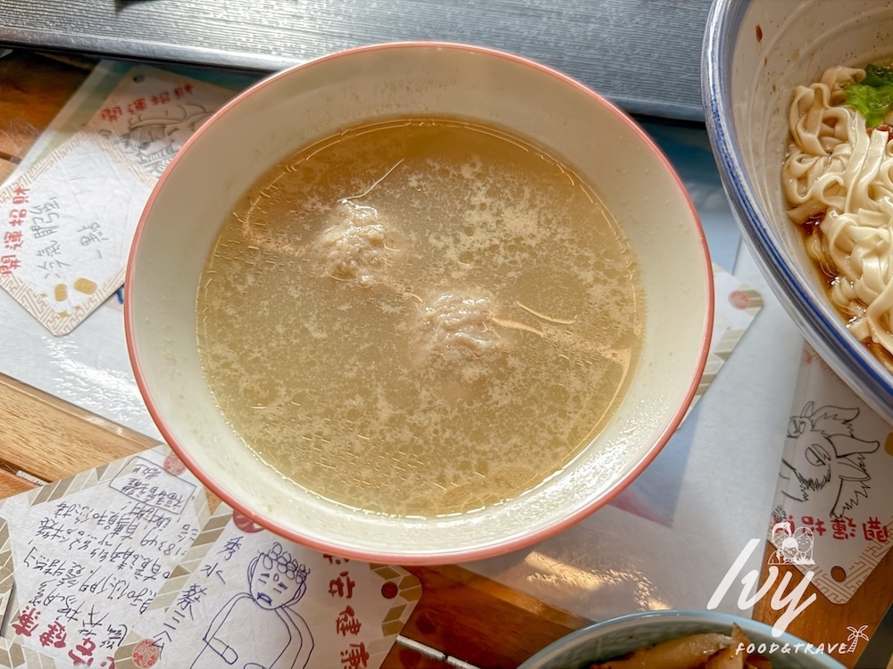 香菇丸湯,湯頭是用大骨熬製,喝的到微甜的滋味,手工的香菇肉丸的鮮香飽滿多汁、Q彈有嚼勁,小朋友超愛吃。